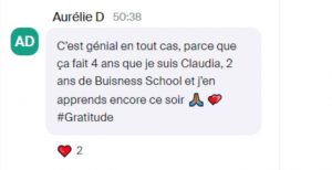 Et une fois par mois, une session où tu peux poser toutes tes questions. Les trucs qui coincent, les doutes, les “mais attends, j’ai pas compris ça”…